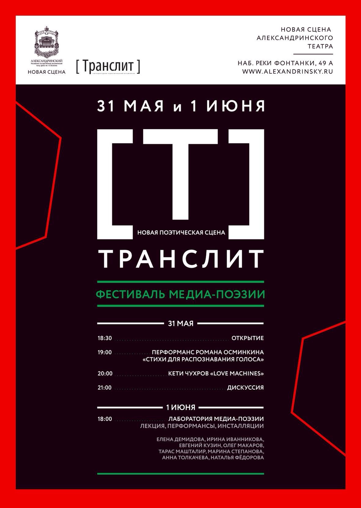 August 9, 2014August 4, 2018 Mediapoetry Festival 1 June 2014, New Stage Alexandrinsky Theatre, St Petersburg 1июня_программа <img src=”https://languageartistdotme.files. Share this: Click to share on X (Opens in new window) X Click to share on Facebook (Opens in new window) Facebook Like Loading... Related